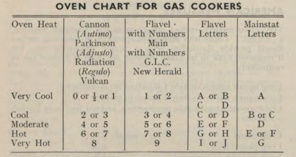 - The book includes a “Table of Equivalent Oven Heats” which features heat settings for different manufacturers’ ovens. Not only does it seem like one oven, the Cannon with Autimo settings, didn’t exist until at least the late 40s, Daly’s chart also bears a striking resemblance to one published in the 1950s by British food writer Ambrose Heath in Kitchen Wisdom:
