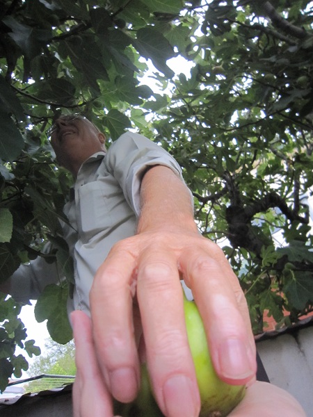 Not that Zio has come down from the fig tree yet. He is marking out which figs to get next time.